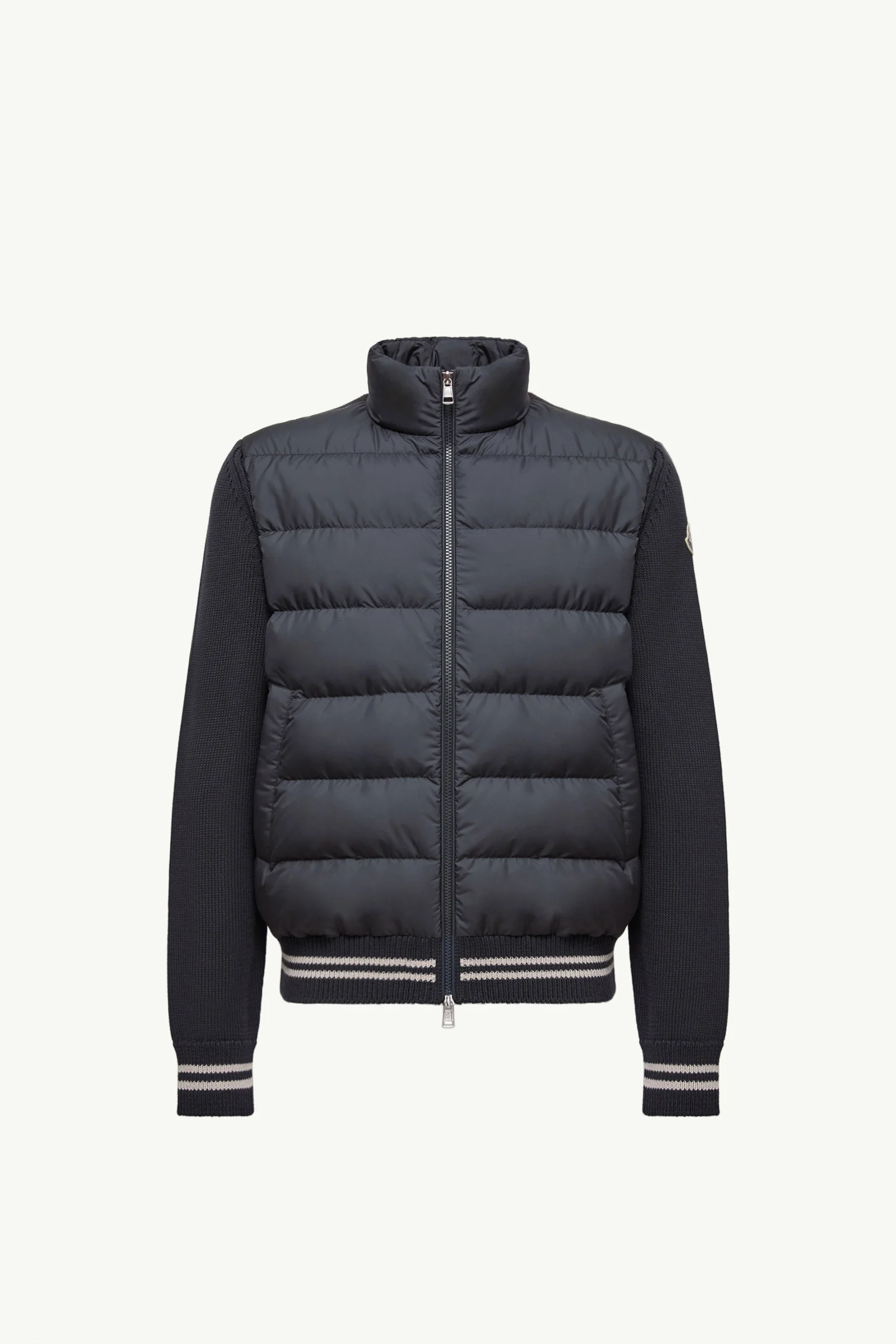 A year-round design, this cotton cardigan for men is enhanced with a down-filled front. A mid-season warmer, this cardigan is crafted from cotton. Featuring a down-filled front, the mid-weight knit easily doubles as outerwear in milder weather. DETAILS - Crafted from cotton - Micro chic lining - Down-filled micro chic front - Stockinette stitch - Gauge 5 - Zipper closure - Front pockets - Padded details - Striped trim - Logo patch SIZE AND FIT - The model is wearing a size L and is 189 cm tall - Regular fit COMPOSITION OUTER FRONT: 100% Polyester; BASE FABRIC: 100% Cotton; FRONT LINING: 100% Polyester; COLLAR: 100% Polyester; PADDING: 90% Down, 10% Feather Product code K20919B00032M1509779 Made in Turkey