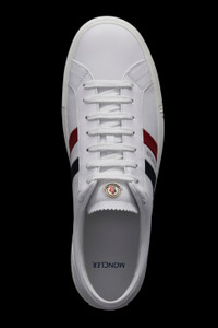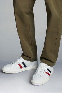 The New Monaco sneakers for men update their tennis shoe-inspired look with Moncler’s iconic colors and high-quality materials for maximum comfort. Crafted from leather, the New Monaco sneakers have a low top, lace-up silhouette enhanced with a heel tab and a cupped EVA outsole. The side showcases bands with pinked edges in the iconic colors of the French flag, hinting at Moncler DNA. - Leather upper - Low top - Lace up - Logo on tongue and grosgrain tricolor side - Ultralight, non-slip cassette EVA sole - Sole height 3 cm COMPOSITION AND CARE LINING: 100% Polyamide / Nylon; SOLE: 100% Elastodiene;UPPER: COW; LINING: COW To protect your purchase over time, we recommend the shoes be cleaned using a brush with soft natural bristles or a slightly damp soft cloth. Before cleaning, make sure that the shoes are completely dry. After brushing, apply an appropriate amount of cleaning product to the leather and create small circular motions with a soft dry cloth. For suede shoes, please use a special rubber brush. We also recommend the use of a suitable water-repellent product before wearing the shoes in wet conditions. Dry away from direct heat. Finish the cleaning using a dry clean cloth. Store in the felt bag provided at the time of purchase. Product code H109A4M0030001A9A002 Made in Albania