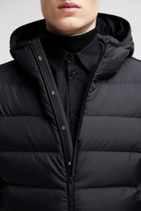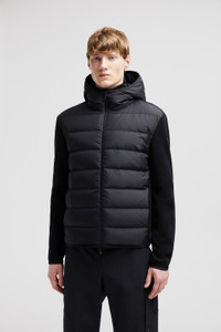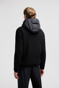 Crafted from a stretch wool, this padded cotton zip-up hoodie for men can be worn as outerwear during milder weather. Designed for the contemporary man, this zip-up cardigan is a versatile style that transcends seasons. The down-filled style is crafted from stretch wool for added comfort while a hood offers cover from the elements. Referencing the collection's '90s influences, it has a sleek silhouette and a subtle silicone logo patch. DETAILS - Crafted from stretch wool - Down-filled micro soft nylon technique front - Plain knit - Hood with micro soft nylon technique lining - Zipper closure - Zipped pockets - Embossed silicone logo patch SIZE AND FIT - The model is wearing a size L and is 188 cm tall - The model measures: chest 88 cm, waist 71 cm, hips 84 cm - Regular fit COMPOSITION OUTER FRONT: 100% Polyester; BASE FABRIC: 95% Wool, 5% Polyester; HOOD LINING: 100% Polyester; FRONT LINING: 100% Polyester; HOOD: 100% Polyester; PADDING: 90% Down, 10% Feather Product code J20919B00010M1122U99 Made in Moldova