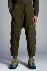 An unexpected design, these padded pants for men and women are a highlight from the new Moncler x Salehe Bembury collection. Salehe Bembury's style signature, these pants owe their shape to the down-filled and quilted sides of the legs. The loose fit style is part of the Moncler Genius collection. - Crafted from nylon knit and jacquard - Down-filled and quilted sides - Waistband with drawstring fastening - Zipped pockets SIZE AND FIT - The male model is wearing a size M and is 186 cm tall - The male model measures: chest 87 cm, waist 71 cm, hips 86 cm - The female model is wearing a size S and is 173 cm tall - The female model measures: bust 82 cm, waist 62 cm, hips 91 cm COMPOSITION AND CARE LINING: 100% Cotton; PADDING: 90% Down, 10% Feather; 1 MATERIAL: 100% Polyamide / Nylon; BASE FABRIC: 100% Cotton Wash max 30°C - Mild process; Do not bleach; Do not tumble dry; Ironing maximum temperature 110°C - without steam; Dry cleaning in tetrachloroethene or with hydrocarbons - mild process; Do not professionally wet clean; Flat dry in the shade; Wash separately; Do not twist or wring; do not soak; It is advisable to wash and iron the garment on reverse. Product code I209D8H00001M327783C Made in Turkey