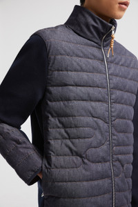 Inspired by the Year of the Snake, this padded cardigan from the men's collection features subtle serpentine-inspired quilting. Celebrating the Year of the Snake, this cardigan emulates the shape of the animal with subtle quilting. Easy to wear throughout the year, the lightweight knit is crafted from denim and cotton. A knot-shaped zipper pull completes the piece, symbolizing love. DETAILS - Crafted from denim - Recycled longue saison lining - Cotton and polyester blend sleeves and back - Down-filled and padded - Gauge 14 - Zipper closure with synthetic material knot puller - Zipped pockets - Terry cloth logo patch SIZE AND FIT - The model is wearing a size L and is 189 cm tall - The model measures: chest 89 cm, waist 70 cm, hips 91 cm - Regular fit - Fitted shoulders and chest - Boxy waistline COMPOSITION OUTER FRONT: 98% Cotton, 2% Elastane / Spandex; BASE FABRIC: 51% Cotton, 41% Polyester, 6% Polyamide / Nylon, 2% Elastane / Spandex; YOKE LINING: 100% Polyamide / Nylon; FRONT LINING: 100% Polyamide / Nylon; COLLAR: 98% Cotton, 2% Elastane / Spandex; PADDING: 90% Down, 10% Feather; 1 MATERIAL: 98% Cotton, 2% Elastane / Spandex Product code K10919B00003M5838742 Made in Moldova