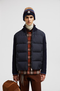 Made for comfort in every season, this padded wool zip-up cardigan for men is enhanced with a down-filled front. Part of a multifunctional wardrobe, this zip-up cardigan features a down-filled front in a water-repellent nylon fabric. The heavy knit is crafted from wool with a compact yet supremely soft finish. A versatile style, the warmer doubles as outerwear in milder weather. DETAILS - Crafted from comfort wool - Rrainwear lining - Down-filled rainwear front - Stockinette stitch - Gauge 3 - Zipper closure - Pockets with snap button closure - Striped trim SIZE AND FIT - The model is wearing a size L and is 187 cm tall - The model measures: chest 85 cm, waist 75 cm, hips 85 cm - Regular fit COMPOSITION OUTER FRONT: 100% Polyamide / Nylon; BASE FABRIC: 100% Virgin wool; FRONT LINING: 100% Polyamide / Nylon; PADDING: 90% Down, 10% Feather; DETAILS PADDING: 100% Polyester; 1 MATERIAL: 100% Polyamide / Nylon Product code J20919B00029M1172775 Made in Turkey