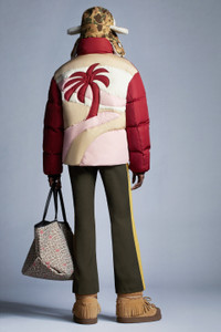 Part of the 8 Moncler Palm Angels collection and an example of Moncler's dedication to sustainability, Panamint is a short down jacket crafted from ECONYL®. Championing Moncler's commitment to a sustainable future, Panamint is a short down jacket crafted from ECONYL®, a regenerated nylon derived from ocean and land based waste. Channeling the 8 Moncler Palm Angels collection aesthetic, the back boasts multicolor palm-shaped intarsia. - Gender-neutral - Crafted from ECONYL® regenerated nylon - Down-filled - Organic cotton lining - Multicolored palm intarsia on the back - Front zip and branded snap button closure - Side pockets with metal zip closure and suede-effect microfiber edging - Cuffs with internal elastic - Adjustable technical drawstring on hem with metal eyelets and silicone stopper - Small velvet logo embroidered on left sleeve - Regular fit SIZE AND FIT - The model is wearing a size 3 and is 186 cm tall - Regular fit - Straight cut COMPOSITION AND CARE EXTERIOR: 100% Polyamide / Nylon; BODY LINING: 100% Cotton; SLEEVES LINING: 100% Polyester; PADDING: 90% Down, 10% Feather; 1 MATERIAL: 100% Polyester Wash max 30°C - Very mild process; Do not bleach; Do not tumble dry; Ironing maximum temperature 110°C - without steam; Do not dry clean; Professional wet cleaning - very mild process; Flat dry in the shade; Wash separately; Do not iron decorations; Iron with a cloth between; It is advisable to wash with the garment on reverse. Product code G209L1A00013M1363439 Made in Romania