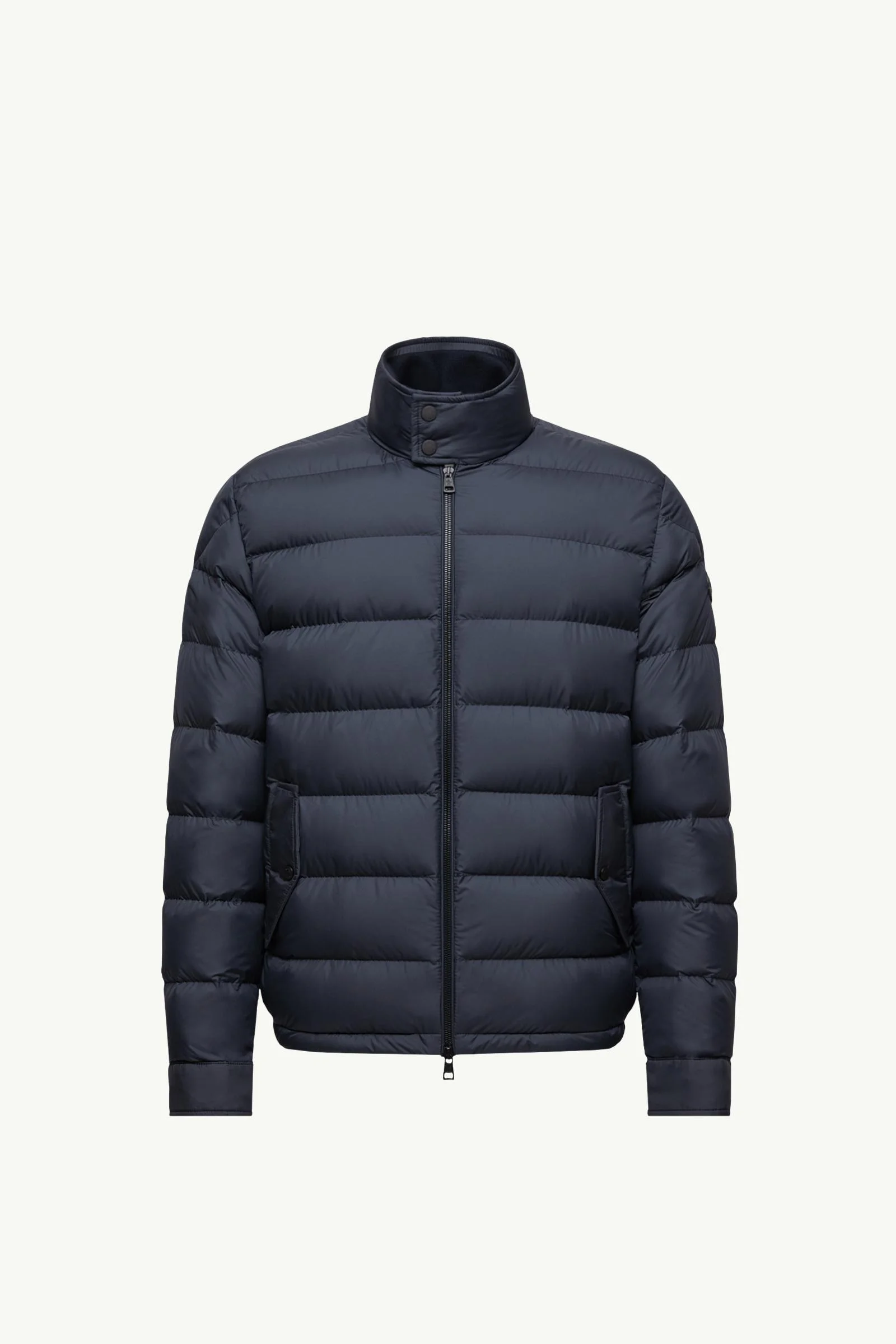 Echoing the elevated minimalism of the men's collection, the Phrier short down jacket spotlights sophisticated technical fabrics. Influenced by the biker jacket, the Phrier reimagines the classic puffer with a contemporary feel. The design is crafted from Airsoft, a light material woven from the finest microfibers for a soft feel and satin finish. Easy to pair with daily essentials, the warmer comes in a short silhouette with a straight cut. DETAILS - Crafted from Airsoft - Airsoft lining - Down-filled - Collar with rib knit lining - Zipper closure - Flap pockets with snap button closure - Inner pockets with zipper and snap button closure - Adjustable cuffs - Leather logo patch SIZE AND FIT - Regular fit - Straight cut - Length (collar to hem): 70 cm COMPOSITION EXTERIOR: 100% Polyester; Collar rib: 89% Virgin wool, 10% Polyamide / Nylon, 1% Elastane / Spandex; LINING: 100% Polyester; PADDING: 90% Down, 10% Feather;LEATHER TAG: COW Product code K20911A00213597X2779 Made in Italy