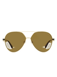 pilot wide-bridge sunglasses Highlights - Gold-tone - Pilot frame - Wide bridge - Logo detail - Lacquered temples - Nose pads - These glasses come with a protective case. Made in Italy Composition Metal 50%, Acetate 50% SIZE & FIT Measurement Arm Length 5.7 in(14.5 cm) Bridge Width 0.47 in(1.2 cm) Lens Diameter 2.32 in(5.9 cm) Total Width 5.62 in(14.3 cm)