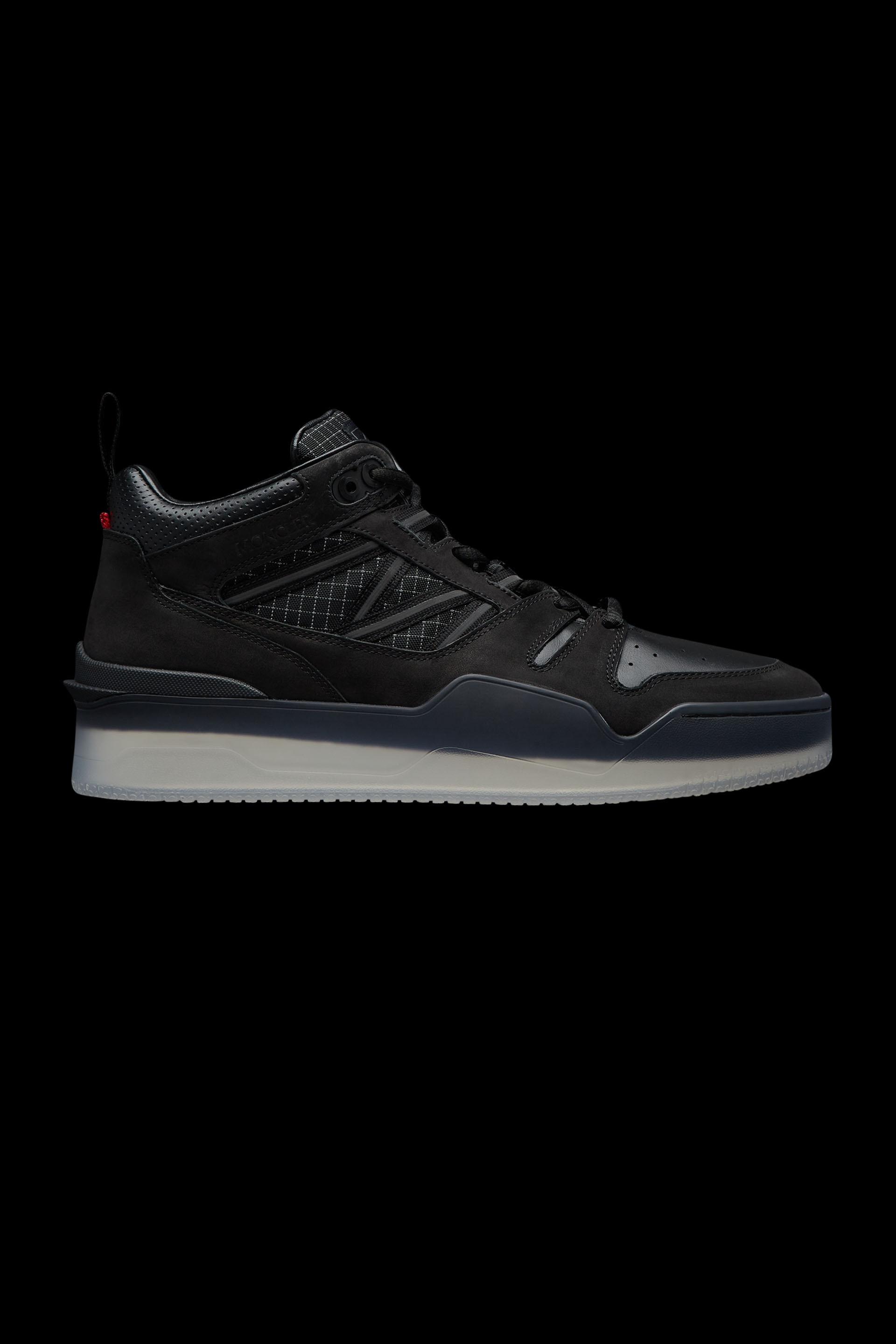 A contemporary, basketball-inspired shoe for men, the Pivot come in a high top sneaker silhouette. A casual city sneaker, the Pivot high tops are inspired by classic basketball styles. The leather upper is embellished with reflective ripstop straps that resemble the letter M, while a logo outline is placed above the heel. An EVA midsole provides lightness and cushioning, while the clear TPU sole adds a contemporary touch. - Nubuck, leather and reflective ripstop upper - Leather lining - Lace closure - TPU and EVA sole - Made in Italy - Sole height 6 cm COMPOSITION AND CARE LINING: 100% Polyamide / Nylon; SOLE: 100% Elastodiene;UPPER: COW; LINING: COW Do not wash; Do not bleach; Do not tumble dry; Do not iron; Do not dry clean Product code I109A4M00100M2554999 Made in Italy