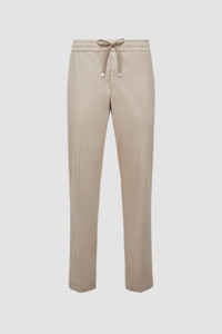 An elevated take on menswear, these jogging pants are crafted from polished cotton. Crafted from stretch cotton with a satin feel, these jogging pants takes menswear to another level. The bottoms pair perfectly with a matching button up shirt. DETAILS - Crafted from cotton - Waistband with drawstring fastening - Zipper closure - Back pockets with snap button closure - Leather logo patch SIZE AND FIT - The model is wearing a size 48 and is 188 cm tall - The model measures: chest 95 cm, waist 77 cm, hips 90 cm COMPOSITION EXTERIOR: 97% Cotton, 3% Elastane / Spandex;LEATHER TAG: COW Product code J20912A00026597WE20K Made in Italy