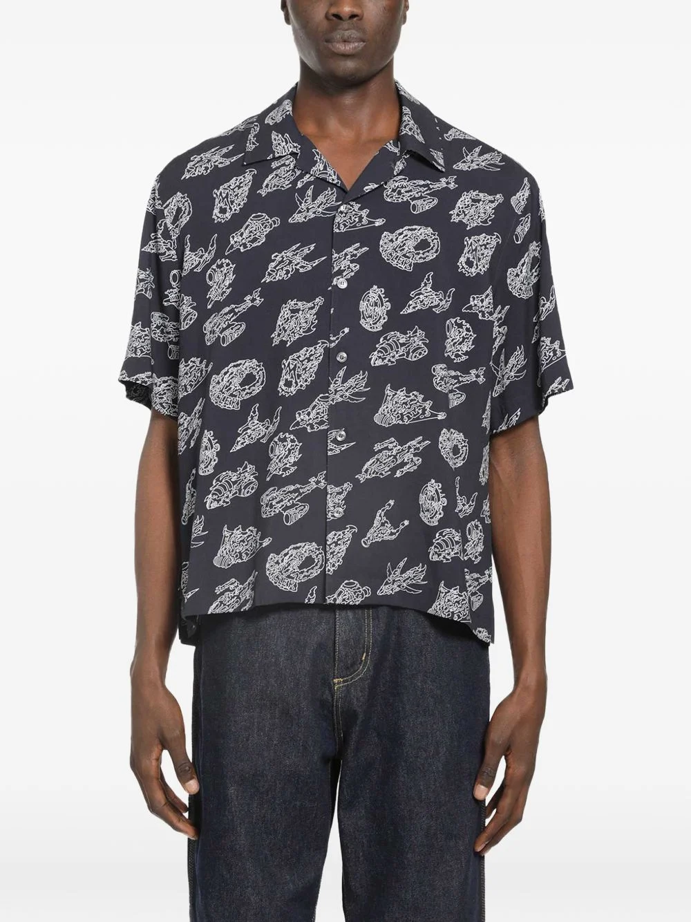 printed short-sleeve shirt Highlights - Dark blue - Short sleeves - All-over print - Patch logo - Classic collar Imported Composition Cotton 100% Washing instructions Read Manufacturer Guidelines