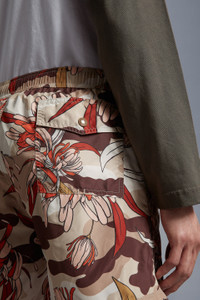 Comfortable and colorful, these swim shorts for men are resort, beach, and pool-ready. Channeling summer, these swim shorts are embellished with a colorful print that fuses floral and outdoor motifs. - Crafted from beachwear nylon - Waistband with drawstring fastening - Side pockets - Back patch pockets SIZE AND FIT - The model is wearing a size L and is 188 cm tall - The model measures: chest 94 cm, waist 75 cm, hips 91 cm COMPOSITION AND CARE LINING: 100% Polyamide / Nylon; BASE FABRIC: 100% Polyester Wash max 30°C - Mild process; Do not bleach; Do not tumble dry; Ironing maximum temperature 110°C - without steam; Do not dry clean; Professional wet cleaning - very mild process; Flat dry in the shade; Wash separately; It is advisable to wash and iron the garment on reverse. Product code I10912C00009596SQS23 Made in Tunisia