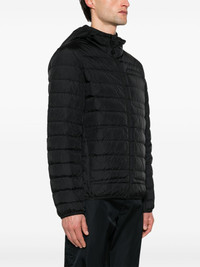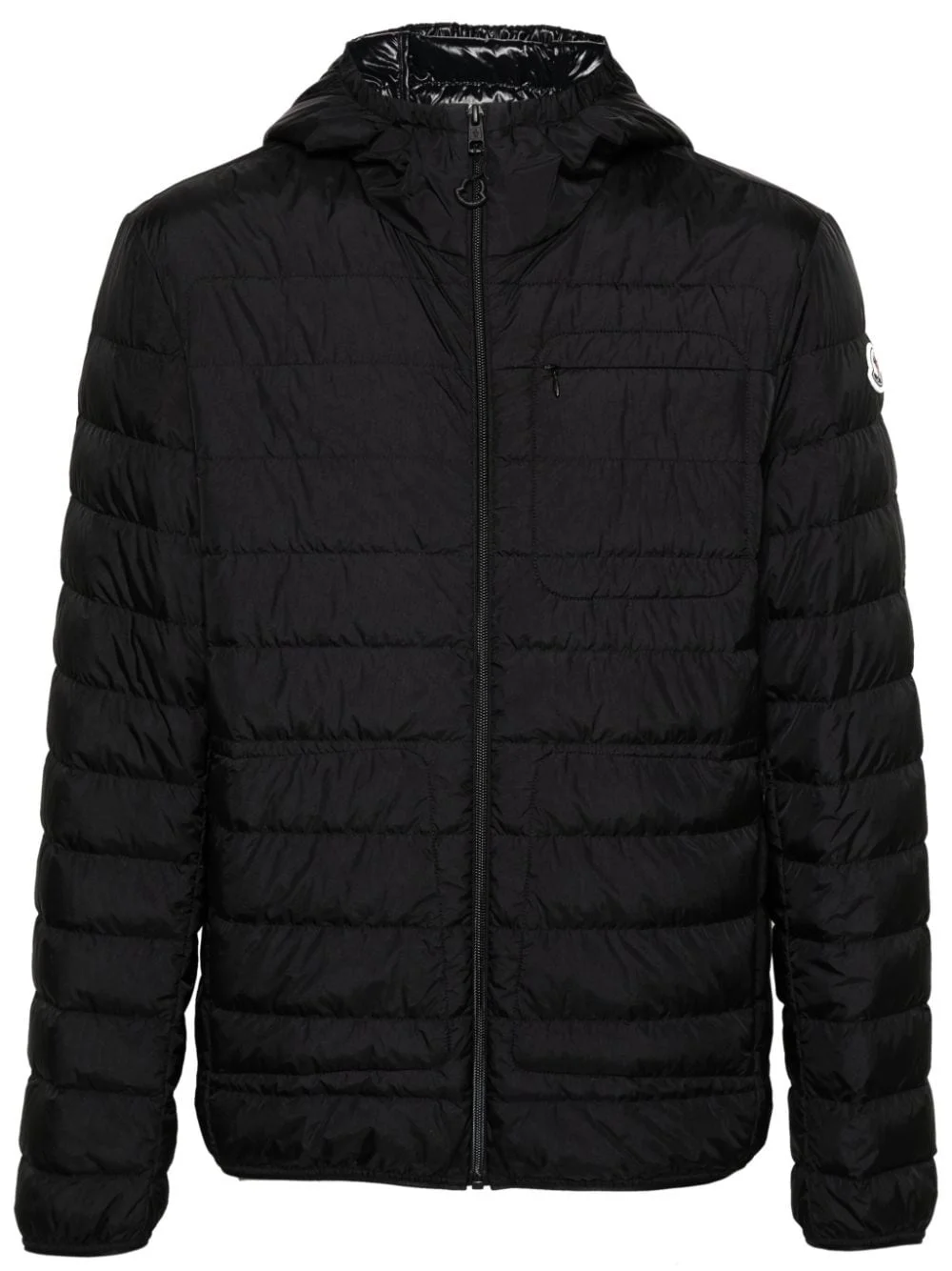 Pulao padded jacket Padded with a plush feather down for added warmth and insulation, Moncler's Pulao jacket features a horizontal quilting that enhances its voluminous silhouette. A funnel neck and hood offer added protection from the elements. Highlights - Black - Shell - Down-feather filling - Padded design - Quilted - Logo patch at the sleeve - Elasticated hood - Long sleeves - Elasticated cuffs - Two side zip-fastening pockets - Straight hem - Front zip fastening Imported Composition Outer: Polyamide 100% Lining: Polyamide 100%, Feather Down 100% SIZE & FIT Model measurements Height 6 ft 2 in(1.87 m) Bust/Chest 37.79 in(96 cm) Hips 37.79 in(96 cm) Waist 30.31 in(77 cm) FittingInformation Designed for a regular fit, allowing for a comfortably loose fit throughout the body Made from a padded non-stretch fabric, giving it no natural elasticity This piece fits true to size – take your usual size Washing instructions Machine Wash