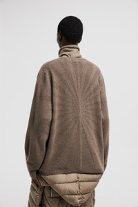At the fore of the Moncler + Rick Owens collection, this wool and cashmere sweater for men is embellished with a stitched geometric design. Speaking to the intricate designs seen throughout the Moncler + Rick Owens collection, this crew neck sweater boasts a tonal radial pattern. A lightweight knit, the design is crafted from plush cashmere. DETAILS - Crafted from a wool and cashmere blend - Stockinette and moss stitch - Radiance pattern - Gauge 12 - Crew neck - Embroidered logo patch SIZE AND FIT - The model is wearing a size L and is 188 cm tall - The model measures: chest 80 cm, waist 63 cm, hips 85 cm - Oversized fit COMPOSITION BASE FABRIC: 90% Virgin wool, 10% Cashmere Product code J209N9C00002M428125X Made in Italy