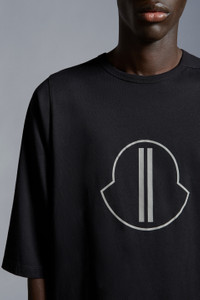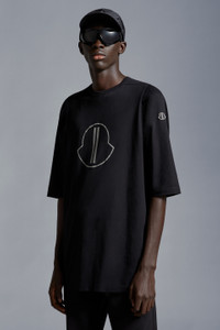 Instantly recognizable, this jersey t-shirt is part of the Moncler + Rick Owens collection for men and women. Emblematic of the collection's elongated silhouettes, this t-shirt comes in a loose fit. The jersey crew neck is embellished with a printed logo motif. - Crafted from jersey - Crew neck - Short sleeves - Printed logo motif - Logo patch on sleeve SIZE AND FIT - The male model is wearing a size M and is 190 cm tall - The male model measures: chest 82 cm, waist 65 cm, hips 86 cm, - The female model is wearing a size XS and is 179 cm tall - The female model measures: bust 75 cm, waist 60 cm, hips 89 cm - Loose fit COMPOSITION AND CARE BASE FABRIC: 100% Cotton; Ribs: 100% Cotton Wash max 30°C - Mild process; Do not bleach; Do not tumble dry; Ironing maximum temperature 110°C - without steam; Do not dry clean; Professional wet cleaning - mild process; Flat dry in the shade; Wash separately; Wash inside out; Iron inside out Product code I209N8C00001M3669999 Made in Italy