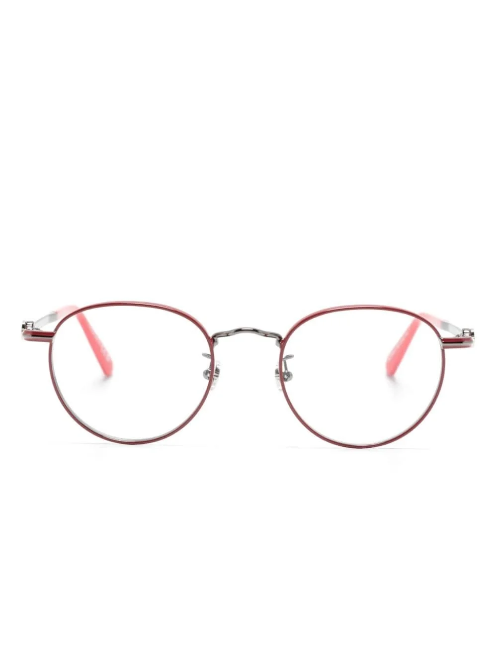 round-frame glasses Highlights - Red - Metal - Round frame - Clear lenses - Nose pads - Logo plaque at the arm - Straight arms - Curved tips - All glasses from farfetch are sold as non-prescription frames. - These glasses come with a protective case. Made in Italy Composition Metal 100% SIZE & FIT Measurement Arm Length 5.9 in(15 cm) Bridge Width 0.78 in(2 cm) Lens Diameter 1.88 in(4.8 cm) Total Width 5.31 in(13.5 cm)