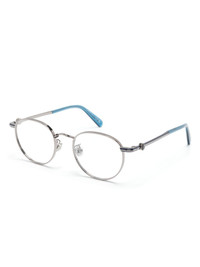 round-frame glasses Highlights - Silver-tone - Metal - Round frame - Clear lenses - Nose pads - Logo plaque at the arm - Straight arms - Curved tips - All glasses from farfetch are sold as non-prescription frames. - These glasses come with a protective case. Made in Italy Composition Acetate 100%, Metal 100% SIZE & FIT Measurement Arm Length 5.9 in(15 cm) Bridge Width 0.78 in(2 cm) Lens Diameter 1.88 in(4.8 cm) Total Width 5.31 in(13.5 cm)