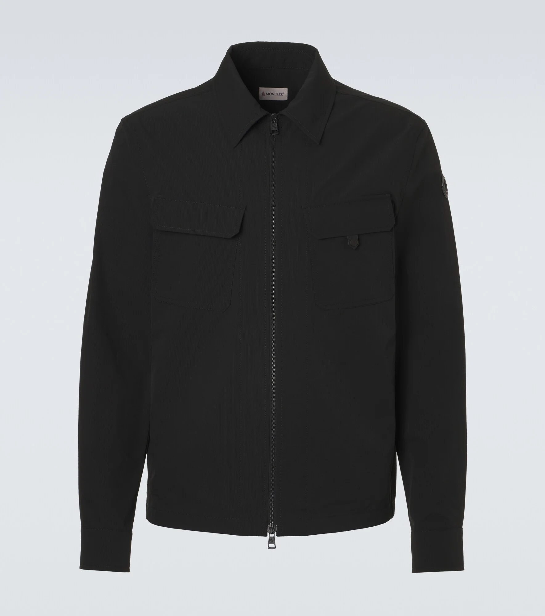 A heritage brand with a cult following, Moncler makes all seasons effortless to maneuver. Crafted from lightweight, airy seersucker fabric, this overshirt features a two-way zipped front, myriad pockets, and logo detail at the sleeve. Product Details - Material: 100% polyester - Care instructions: machine wash at 30 degrees - Made in Romania - Color: black - Designer color name: Black - Details: 100% cow leather - Contains non-textile parts of animal origin - Closure: two-way zipped front - Pockets: zipped pockets, snap-buttoned pockets - Cuff: buttoned - Item number: P01141604 Size & Fit - True to size - Straight fit - Non-stretchy fabric - Falls below the hip - The model in the picture is 185cm-6'1" and wearing a size L