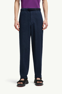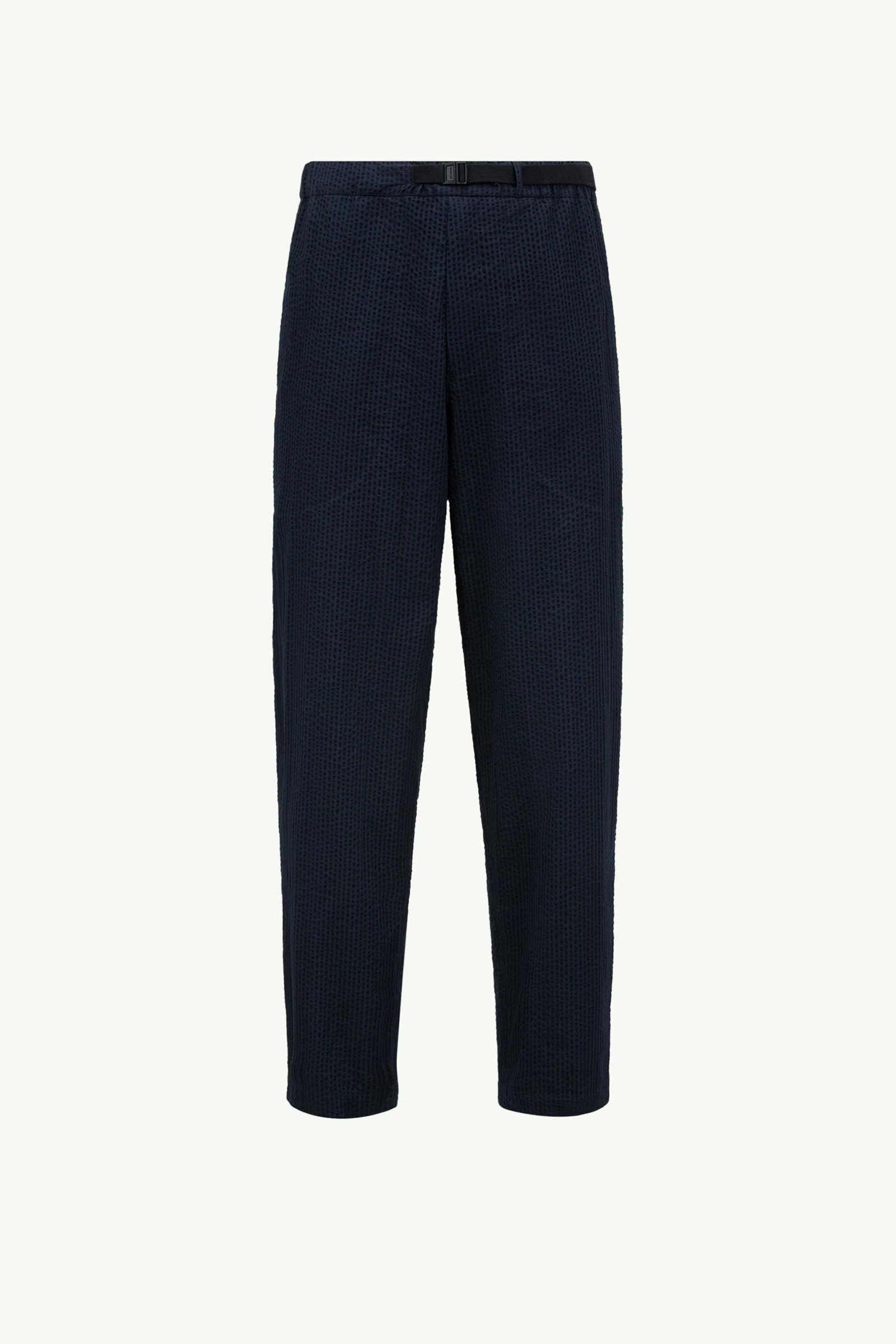 A warm weather essential for men, this pair of pants is crafted from an airy fabric with a sophisticated texture. A fair weather design, this pair of pants is crafted from seersucker. The cotton blend is woven, creating a three-dimensional finish and light feel. The bottoms can be layered under a matching jacket or shirt, resulting in a breezy total look. DETAILS - Crafted from technical cotton blend seersucker - Elastic waistband - Cotton belt - Side and back pockets SIZE AND FIT - The model is wearing a size 48 and is 185 cm tall COMPOSITION BASE FABRIC: 76% Cotton, 24% Polyester Product code K10912A00038598JC780 Made in Romania