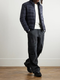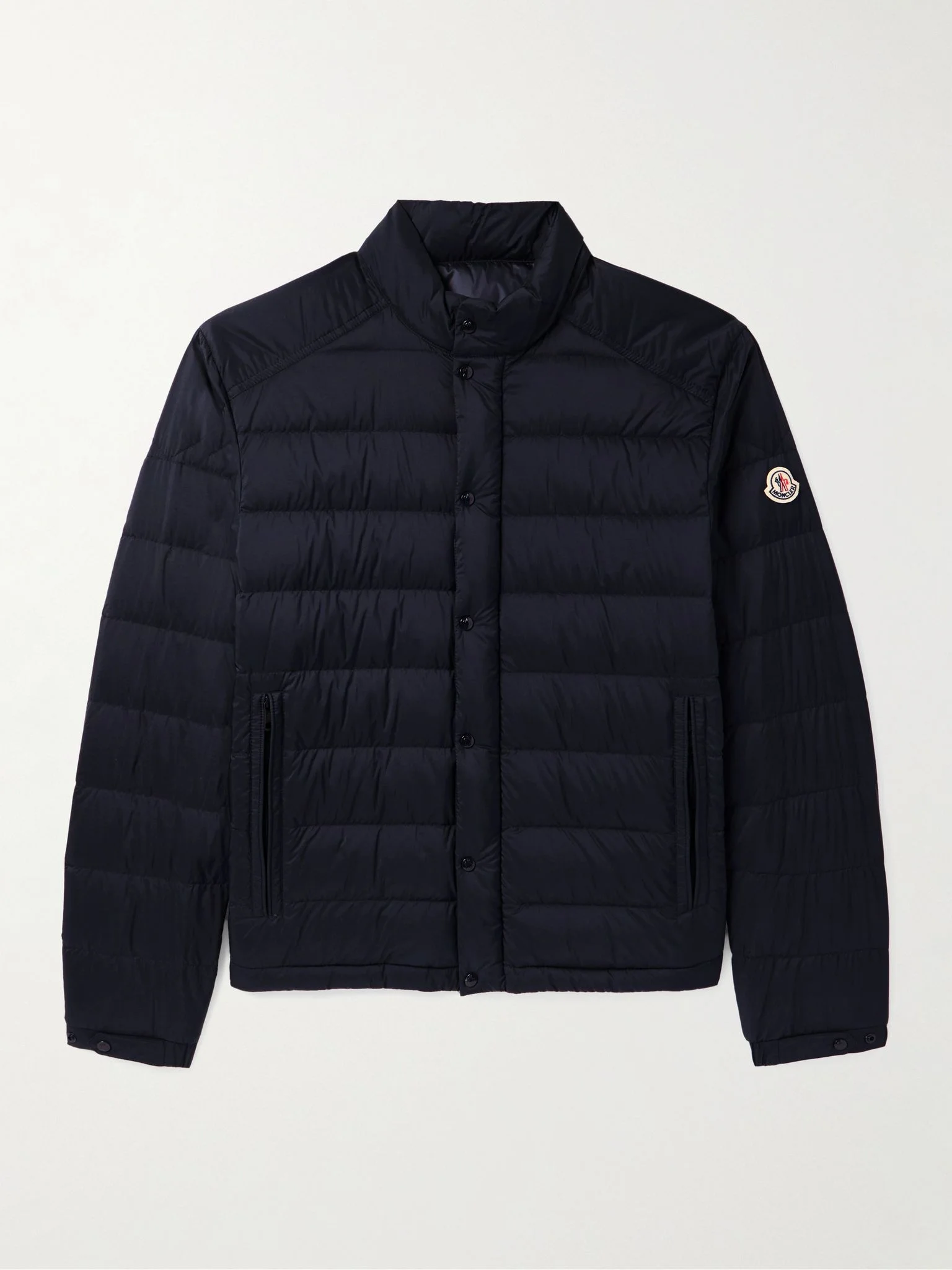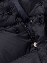 Moncler knows how to design for the cold - it was born in the French Alps and has even outfitted Olympic ski teams. Ideal for days in the city, this jacket is made from weather-resistant nylon and quilted to keep the insulating down evenly distributed. A high stand collar and elasticated trims help lock in warmth. Small to size. See Size & Fit notes. Size & Fit - Size 0 = XS, 1 = S, 2 = M, 3 = L, 4 =XL, 5 = XXL and 6 = XXXL - Fits small to size. Take one size larger than normal - Designed for a slim fit - Padded, non-stretchy fabric - Model is shown wearing a 3 - Model measures: chest 38"/ 96cm, height 6'0"/ 183cm Details & Care - Navy nylon - Snaps and zip fastening - 100% nylon; padding: 90% down, 10% feathers (Goose) - Dry clean