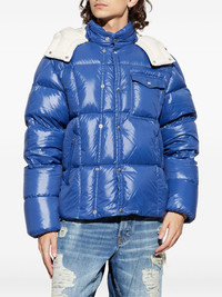 quilted hooded puffer jacket Highlights - Royal blue - Quilted design - Hooded neckline - Snap button fastening - Patch pocket - Shiny shell Imported Composition Outer: Polyamide 100% Lining: Polyamide 100% Washing instructions Read Manufacturer Guidelines