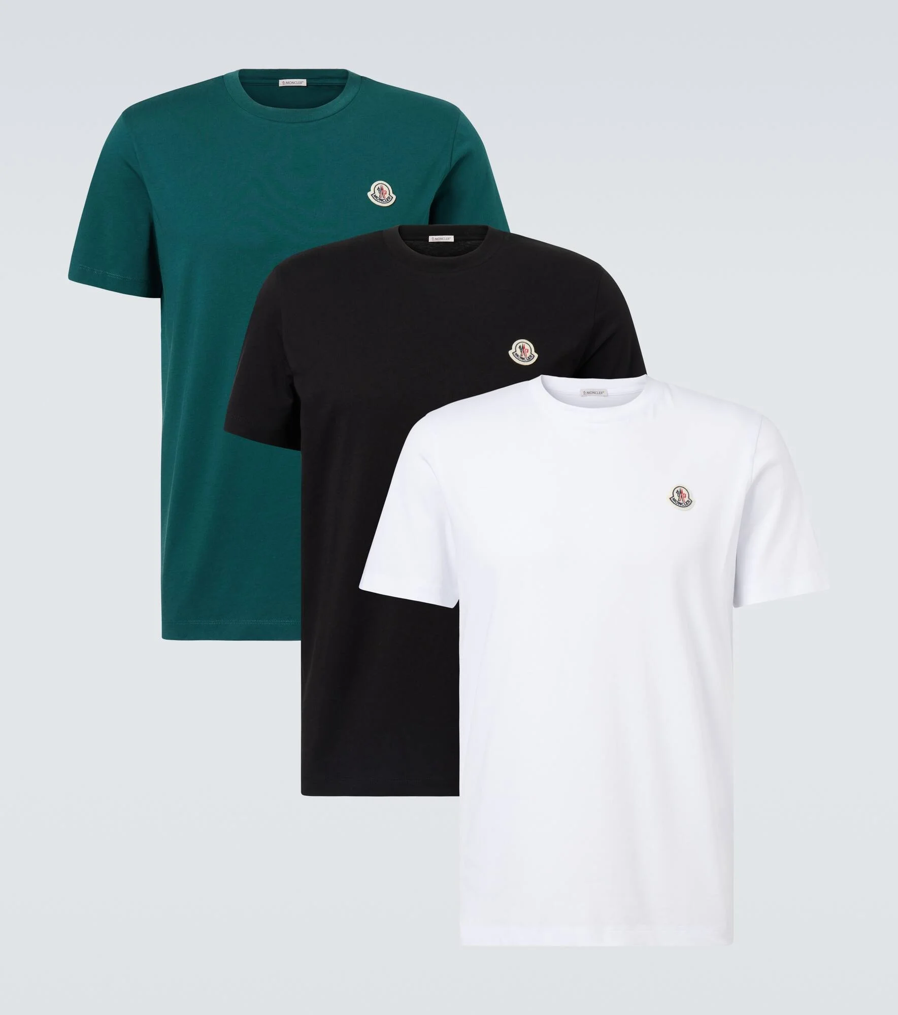This set of three crewneck T-shirts is made from soft cotton jersey and finished with subtle logo embroidery. A versatile foundation for everyday dressing, it reflects Moncler's focus on comfort, quality, and understated branding. Product Details - Material: 100% cotton - Care instructions: machine wash at 30 degrees - Made in Turkey - Designer color name: 3P8 - Item color: multicolor - Collar: crewneck - Three-piece set - Item number: P01068413 Size & Fit - True to size - Straight fit - Slightly stretchy fabric - Falls below the hip - The model in the picture is 185cm-6'1" and wearing a size L