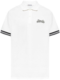 logo-embroidered polo shirt Highlights - White - Front button placket - Polo collar - Short sleeves - Stripe trim Imported Composition Cotton 100% SIZE & FIT FittingInformation Designed for a relaxed fit, this polo shirt offers comfort and movement Made from a midweight non-stretch fabric, this piece offers minimal elasticity when worn