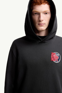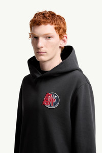 Rooted in brand history, this cotton hoodie from the men's collection is characterized by a new iteration of the logo. A go-to piece in a casual wardrobe, this sweatshirt is crafted from soft cotton fleece. Nodding to Moncler's origins, the hoodie is embellished with a logo patch. DETAILS - Crafted from cotton fleece - Hood - Rib knit trim - Logo patch SIZE AND FIT - The model is wearing a size L and is 190 cm tall - Loose fit COMPOSITION BASE FABRIC: 100% Cotton; HOOD: 100% Cotton; HOOD LINING: 100% Cotton; Ribs: 95% Cotton, 5% Elastane / Spandex Product code K20918G00057899V4998 Made in Turkey