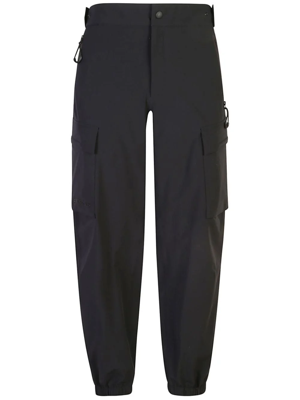 straight-leg cargo track pants Highlights - Black - Technical jersey - Concealed fly and button fastening - Mid-rise - Adjustable side straps - Mini logo tag - Two side zip-fastening pockets - Two side cargo pockets - Elasticated ankles - Straight leg Made in Italy Composition Polyamide 100% Washing instructions Read Manufacturer Guidelines