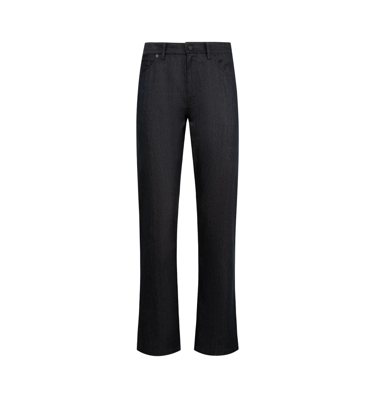 MONCLER Straight Leg Denim Jeans featuring comfort denim, zipper and snap button closure and logo patch. 75% cotton, 24% polyester, 1% elastane/spandex. DESIGNER STYLE ID: 2A000-39-598X1 COLOR: 76C NAVY