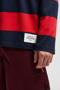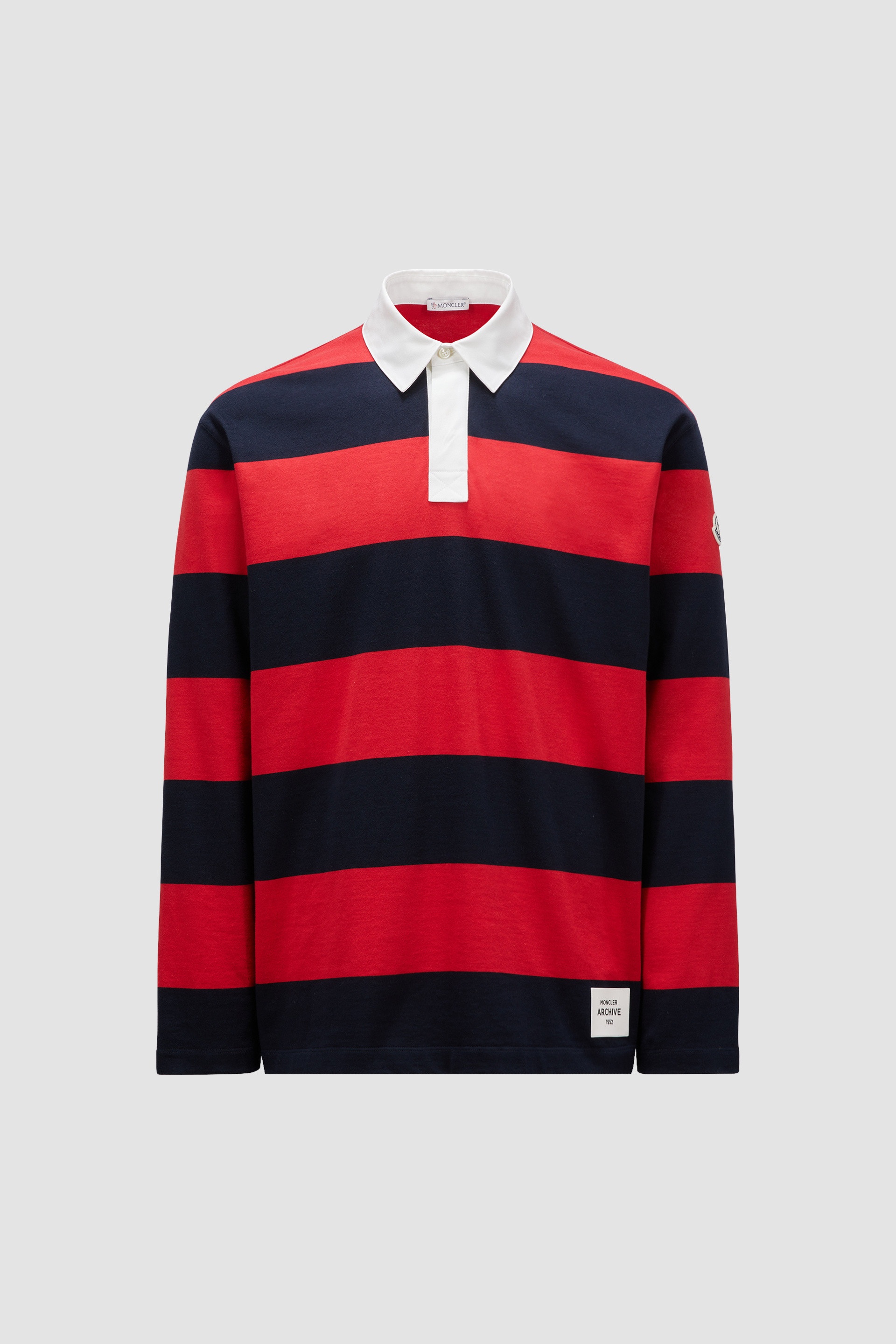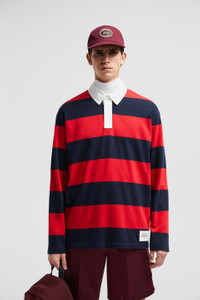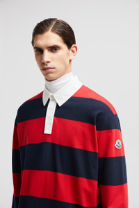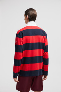 A nod to rugby kits, this long sleeved men's polo shirt is defined by stripes and subtle logo details. Crafted with contrasting colored stripes, this polo shirt embraces the collection's rugby-inspired aesthetic. The classic style is made from cotton jersey with long sleeves. DETAILS - Crafted from cotton jersey - Cotton drill collar and placket - Long sleeves - Mother-of-pearl button closure - Logo label SIZE AND FIT - The model is wearing a size L and is 190 cm tall - The model measures: chest 92 cm, waist 77 cm, hips 95 cm - Oversized fit COMPOSITION BASE FABRIC: 100% Cotton; 1 MATERIAL: 100% Cotton Product code J20918B0000189ANCP47 Made in Turkey