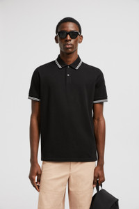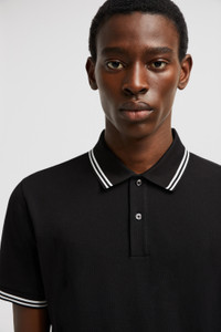 Designed to be easily incorporated into everyday life, this short sleeve polo shirt for men is crafted from breathable cotton piquet. A timeless design that transcends seasons, this polo shirt is crafted from breathable cotton piquet. The classic style is embellished with stripes along the sleeves and collar. DETAILS - Crafted from cotton piquet - Collar - Short sleeves - Mother-of-pearl button closure - Striped trim along the cuffs and collar SIZE AND FIT - The model is wearing a size L and is 189 cm tall - The model measures: chest 85 cm, waist 70 cm, hips 88 cm - •Loose fit COMPOSITION BASE FABRIC: 100% Cotton; Ribs: 99% Cotton, 1% Elastane / Spandex Product code K10918A0000789A16999 Made in Turkey