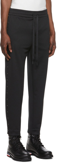 Casual, yet edgy, these sweatpants for men are emboldened with studwork. A casual staple redesigned in a punk key, these triacetate sweatpants are embellished with studwork along the legs. The sweatpants pair perfectly with a matching zip-up sweatshirt. - Crafted from triacetate - Studded grosgrain ribbon - Side pockets - Waistband with drawstring fastening SIZE AND FIT - The model is wearing a size L and is 188 cm tall - The model measures: chest 85 cm waist 71 cm hips 87 cm - Slim fit COMPOSITION AND CARE BASE FABRIC: 100% Polyester Wash max 30°C - Mild process; Do not bleach; Do not tumble dry; Ironing maximum temperature 110°C - without steam; Dry cleaning in tetrachloroethene or with hydrocarbons - mild process; Professional wet cleaning - mild process; Flat dry in the shade; Wash separately; Wash inside out; Iron inside out; PROTECT TRIMS WHILE WASHING Product code H20918H00001899A1999 Made in Romania