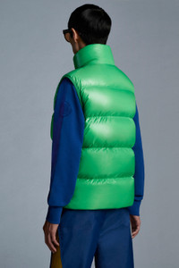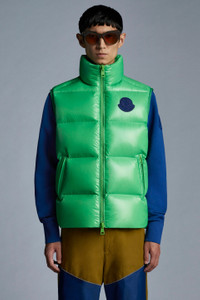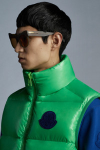 The Sumida vest in shiny recycled nylon laqué is part of the 2 Moncler 1952 line, Collection n° 2 of the Moncler Genius project. This iconic Moncler piece moves with the times to embrace a more sustainable approach. Its distinctive classic boudin quilting and down-filled padding provide warmth in style while the introduction of shiny recycled nylon laqué fabric represents a sustainable evolution of this heritage item. - Vest for men from the 2 Moncler 1952 line, collection n° 2 of the Moncler Genius project - Crafted in recycled shiny nylon laqué - Down-filled and boudin-quilted - Contrast color recycled shiny nylon laqué lining - Two-way front zipper - Double-welt pockets with zipper closures - Interior pocket with zipper - Stand collar - Performance elastic trim on armholes - Moncler logo on chest - Mid-length SIZE AND FIT - The model is wearing a size L and is 187 cm tall - Featuring a regular fit across the shoulders, and a straight cut through the body. COMPOSITION AND CARE EXTERIOR: 100% Polyamide / Nylon; LINING: 100% Polyamide / Nylon; PADDING: 90% Down, 10% Feather Wash max 30°C - Very mild process; Do not bleach; Do not tumble dry; Ironing maximum temperature 110°C - without steam; Do not dry clean; Professional wet cleaning - very mild process; Flat dry in the shade; Wash separately; It is advisable to wash and iron the garment on reverse. Product code G20921A0003453A0E84I Made in Moldova