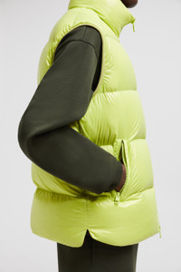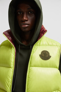 A mid-season warmer, the Pop-infused Sumido down vest for men is crafted from glossy recycled nylon laque. A classic Moncler design, the Sumido down vest is an essential piece in a transitional wardrobe. Crafted from lightweight and water-repellent recycled nylon laque, the short puffer jacket is enlivened with contrast color lining. DETAILS - Crafted from recycled lightweight nylon laque - Recycled lightweight nylon laque lining - Down-filled - Stand collar - Zipper closure - Zipped pockets - Felt logo patch SIZE AND FIT - The model is wearing a size 3 and is 185 cm tall - The model measures: chest 85 cm, waist 71 cm, hips 84 cm - Regular fit - Straight cut COMPOSITION EXTERIOR: 100% Polyamide / Nylon; LINING: 100% Polyamide / Nylon; PADDING: 90% Down, 10% Feather Product code J20911A00189595GJ8B4 Made in Moldova