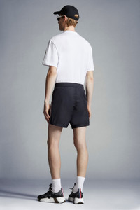 A summer getaway must-pack, these swim shorts are an essential from the men's collection. Fit for the beach, lake or pool, these swim shorts are a summertime classic. Crafted from nylon, the swim trunks have a comfortable elasticized waistband and subtle tricolor accents. - Crafted from nylon technique - Snap button closure and drawstring fastening - Side pockets - Back flap pockets - Tricolor grosgrain detailing - Logo SIZE AND FIT - The model is wearing a size L and is 188 cm tall - The model measures: chest 89 cm, waist 75 cm, hips 94 cm COMPOSITION AND CARE BASE FABRIC: 100% Polyamide / Nylon; LINING: 100% Polyamide / Nylon Wash max 30°C - Mild process; Do not bleach; Do not tumble dry; Ironing maximum temperature 110°C - without steam; Dry cleaning in tetrachloroethene or with hydrocarbons - mild process; Professional wet cleaning - very mild process; Flat dry in the shade; Wash separately; It is advisable to wash and iron the garment on reverse.; Do not twist or wring; PROTECT TRIMS WHILE WASHING Product code J10912C0002153326743 Made in Albania
