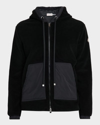 This Moncler hoodie is made from plush fleece and smooth technical fabric trim for toneontone textural contrast. Hooded drawstring neckline Fullzip front Split kangaroo pocket Elasticized cuffs Polyester/acrylic Lining: Polyester Imported