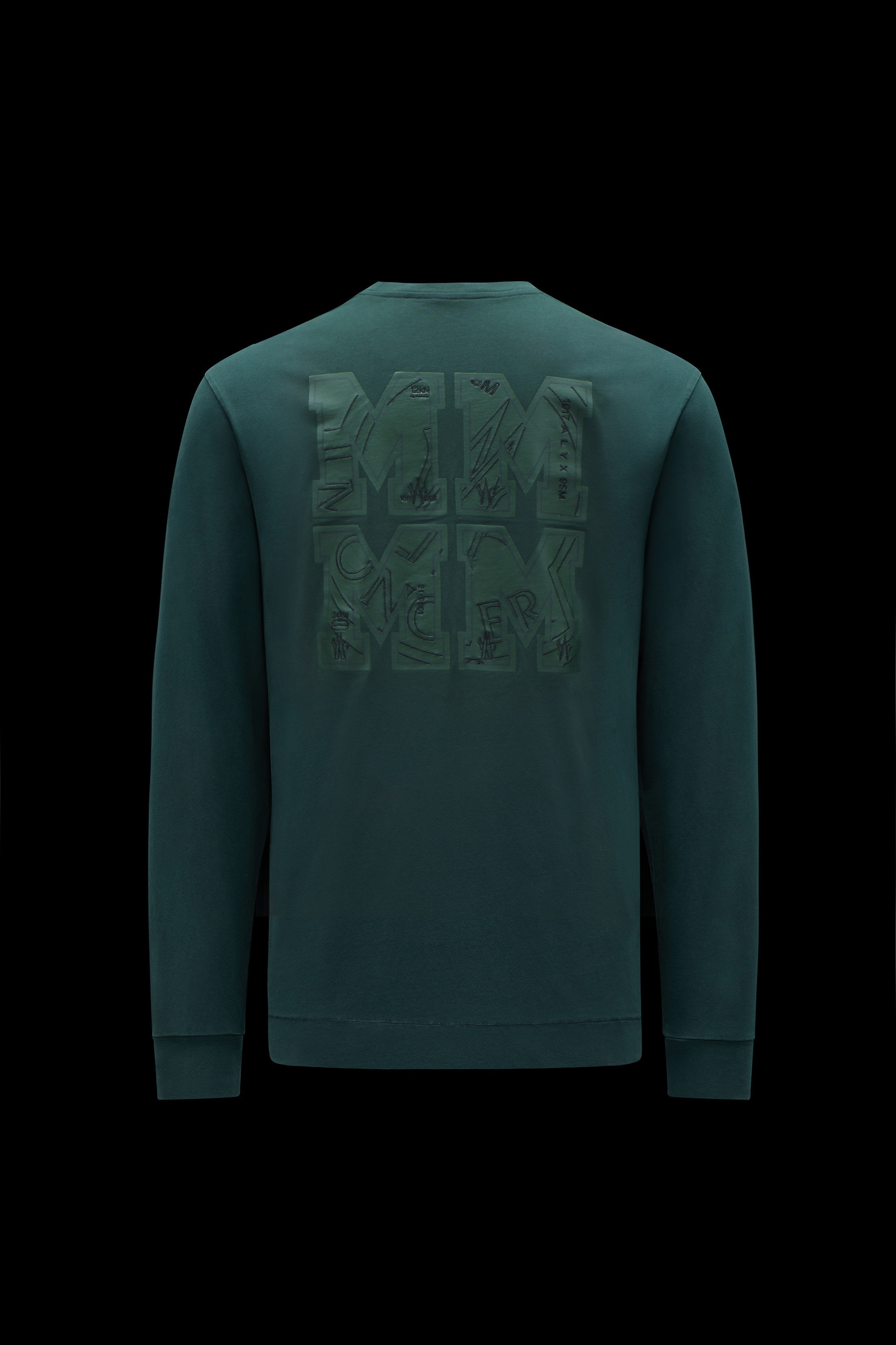 Crafted from recycled and organic cotton, this long sleeve t-shirt has a glossy print on the back. The design is part of the 6 Moncler 1017 Alyx 9SM collection. Inspired by the tension of opposites and the contrast between shiny and matte, this t-shirt is part of the 6 Moncler 1017 Alyx 9SM collection. Crafted from recycled and organic cotton jersey, the design features a glossy, tonal print on the back. The chest is discretely adorned with two embroidered logos symbolizing the design collaboration. - Crafted from recycled and organic cotton jersey - Crew neck - Long sleeves - Embroidered logos across the chest - Tonal print across the back SIZE AND FIT - The model is wearing a size L and is 192 cm tall COMPOSITION AND CARE BASE FABRIC: 100% Cotton; Collar rib: 100% Cotton Hand wash; Do not bleach; Do not tumble dry; Do not iron; Do not dry clean; Do not professionally wet clean; Flat dry in the shade; Wash separately; It is advisable to wash with the garment on reverse.; Do not iron printed part Product code G209Y8D00003899FD876 Made in Portugal
