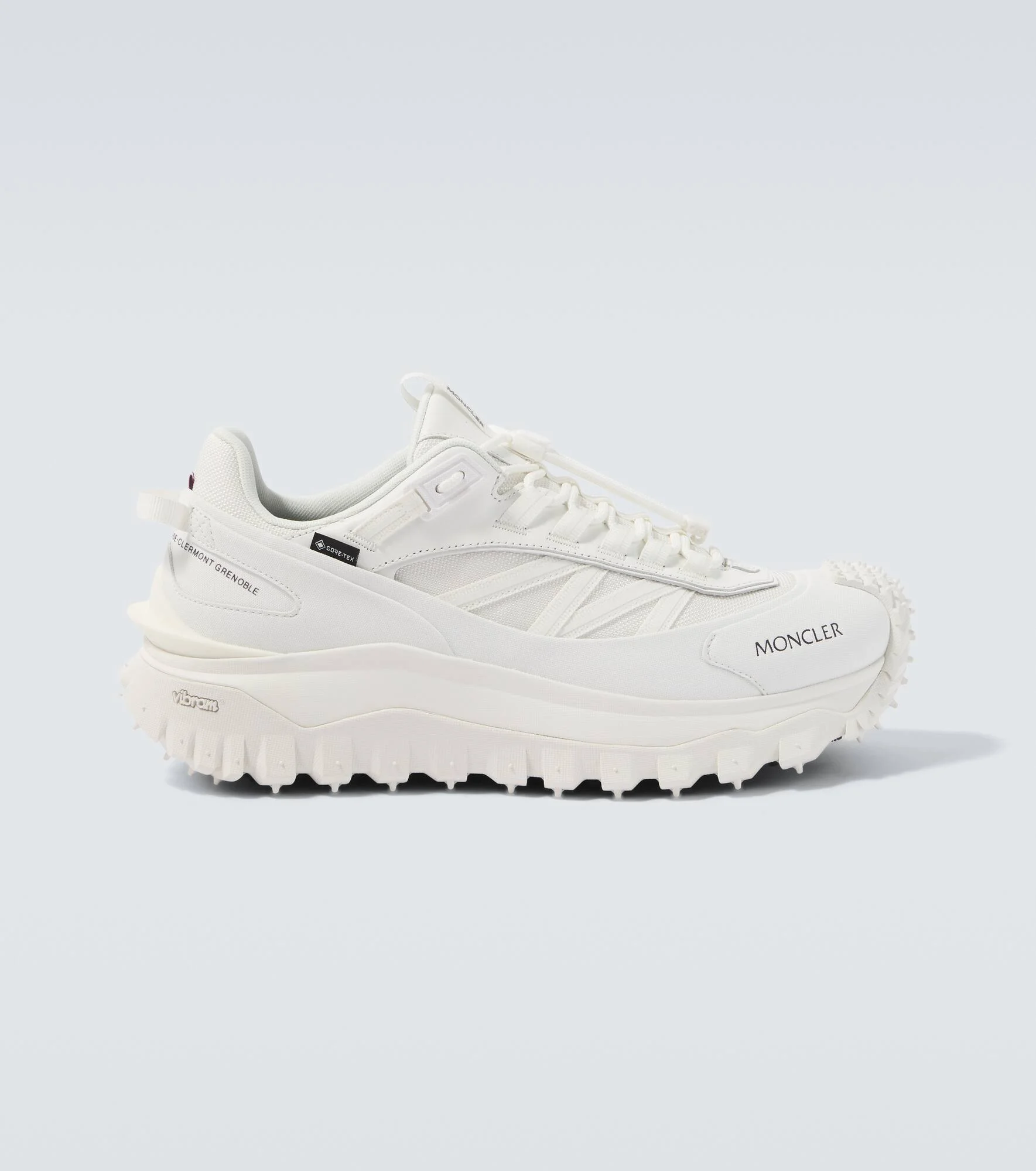Conquer all terrains with the Trailgrip GTX sneakers from Moncler. Crafted from nylon and leather, this ultra-comfortable pair features waterproof Gore-Tex® membranes, lightweight EVA midsoles, and Vibram soles for unmatched traction. Product Details - Upper: fabric, rubber, leather - Lining: fabric - Sole: fabric insole, rubber sole - Color: white - Toe shape: round toe - Made in Vietnam - Includes: shoe box, dust bag - Designer color name: Brilliant White - Item color: white - Closure: lace-up - Item number: P01129665 Size & Fit - True to size - Half sizes please take the next size up - European sizes