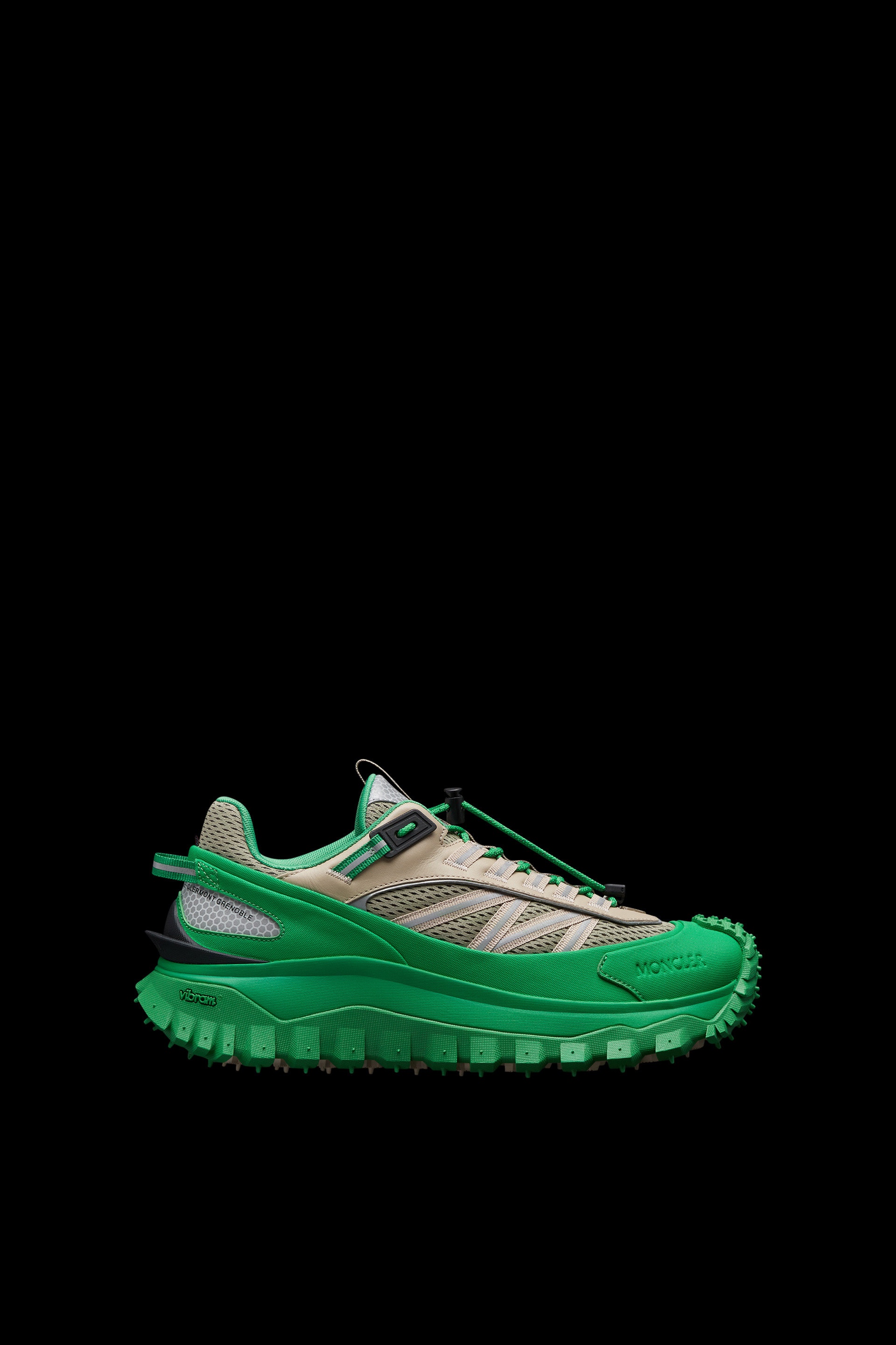 Made to support an active lifestyle, the men's Trailgrip sneakers provide lightness and protection on a run, trek or an outdoor stroll. Designed to accompany you during outdoor activities, the Trailgrip sneakers provide comfort and stability. Crafted from rubberized mesh, an EVA midsole that adds flexibility and lightness, while the Vibram MEGAGRIP sole adds traction and slip resistance to the style. The sneakers are part of the Moncler Grenoble Day-namic collection. - Rubberized mesh and textured PU upper - Mesh lining - Lace-up - TPU spoiler sole - EVA mid-sole - Carbon fiber between mid-sole and tread - Special Vibram MEGAGRIP rubber compound - Sole height 4.5 cm COMPOSITION AND CARE UPPER: 100% Polyamide / Nylon; LINING: 100% Polyamide / Nylon; SOLE: 100% Elastodiene Do not wash; Do not bleach; Do not tumble dry; Do not iron; Do not dry clean Product code I10974M00010M2670P18 Made in Vietnam