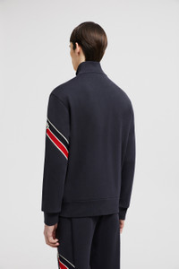 Emblematic of the subtle details that permeate the men's collection, this zip-up sweatshirt has a tricolor accent. A casual wardrobe staple, this sweatshirt is crafted from a plush cotton fleece blend. A style signature that permeates the collection, tricolor stripes adorn the sleeve of the zip-up style. DETAILS - Crafted from a cotton fleece blend - Turtleneck - Zipper closure - Pockets with snap button closure - Tricolor trim on the sleeve SIZE AND FIT - The model is wearing a size L and is 187 cm tall - The model measures: chest 85 cm, waist 75 cm, hips 85 cm - Loose fit COMPOSITION BASE FABRIC: 87% Cotton, 13% Polyamide / Nylon; Ribs: 95% Cotton, 5% Elastane / Spandex Product code J20918G0000189A8F778 Made in Turkey