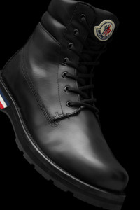Durable and modern, the Vancouver leather boots for men combine hiking inspiration and a contemporary feel. The Vancouver boot for men showcases a comfortable, rugged design finished with iconic Moncler details. This style is crafted from leather and features a padded collar, lace up closure and a lug outsole decorated with the colors of the French flag. - Leather upper - Leather insole - Lace up - Leather welt - Micro rubber mid-sole - Silicone grip rubber sole - Made in Italy - Sole height 3.5 cm COMPOSITION AND CARE UPPER: 100% Polyamide / Nylon; SOLE: 100% Elastodiene;UPPER: COW; LINING: COW To protect your purchase over time, we recommend the shoes be cleaned using a brush with soft natural bristles or a slightly damp soft cloth. Before cleaning, make sure that the shoes are completely dry. After brushing, apply an appropriate amount of cleaning product to the leather and create small circular motions with a soft dry cloth. For suede shoes, please use a special rubber brush. We also recommend the use of a suitable water-repellent product before wearing the shoes in wet conditions. Dry away from direct heat. Finish the cleaning using a dry clean cloth. Store in the felt bag provided at the time of purchase. Product code H209A4F0005002S71999 Made in Italy