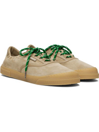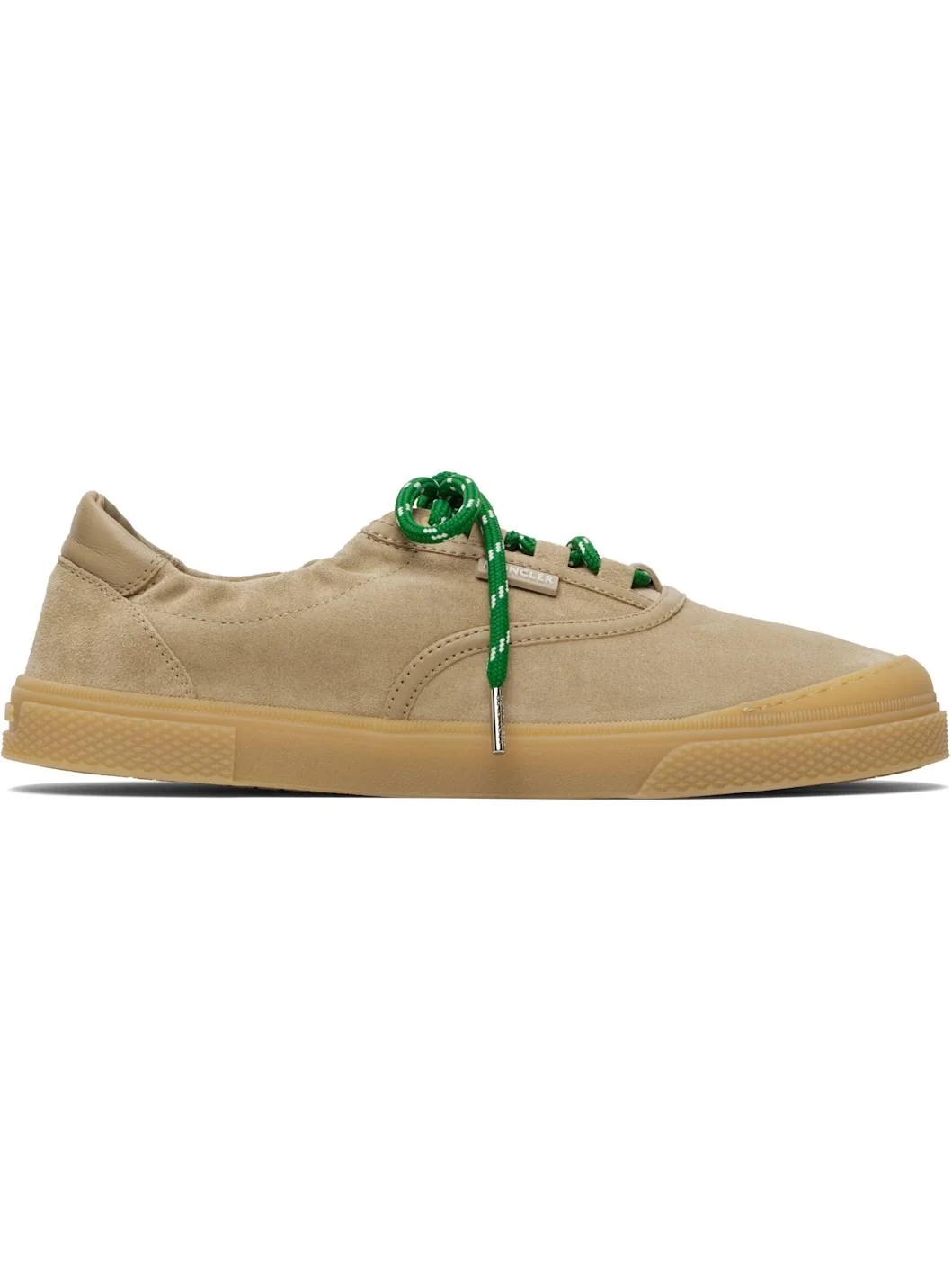 Low-top suede and buffed lambskin sneakers. · Lace-up closure · Partially elasticized collar · Rubberized logo flag at outer side · Buffed lambskin lining · Treaded rubber sole Supplier color: Beige Upper: leather, lambskin. Sole: rubber. Made in Italy 261111M237001