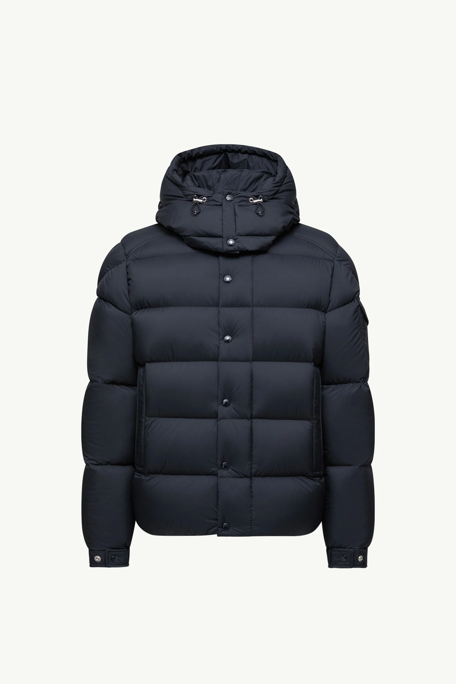 Unmistakably Moncler, the Moncler Maya 70 short down jacket is an essential warmer from the men's collection. Providing warmth, while maintaining a light weight, the Moncler Maya 70 down jacket is crafted from longue saison. The short puffer is enhanced with a hood, easily detached depending on the weather. The jacket is completed by its signature patch pocket on the sleeve. DETAILS - Crafted from recycled longue saison - Nylon leger lining - Down-filled - Detachable and adjustable hood - Zipper and snap button closure - Zipped pockets - Patch pocket on the sleeve - Adjustable cuffs - Hem with drawstring fastening - Logo patch SIZE AND FIT - Loose fit - Length (collar to hem): 69 cm COMPOSITION EXTERIOR: 100% Polyamide / Nylon; LINING: 100% Polyamide / Nylon; HOOD LINING: 100% Polyamide / Nylon; PADDING: 90% Down, 10% Feather Product code K20911A0020553333776 Made in Armenia