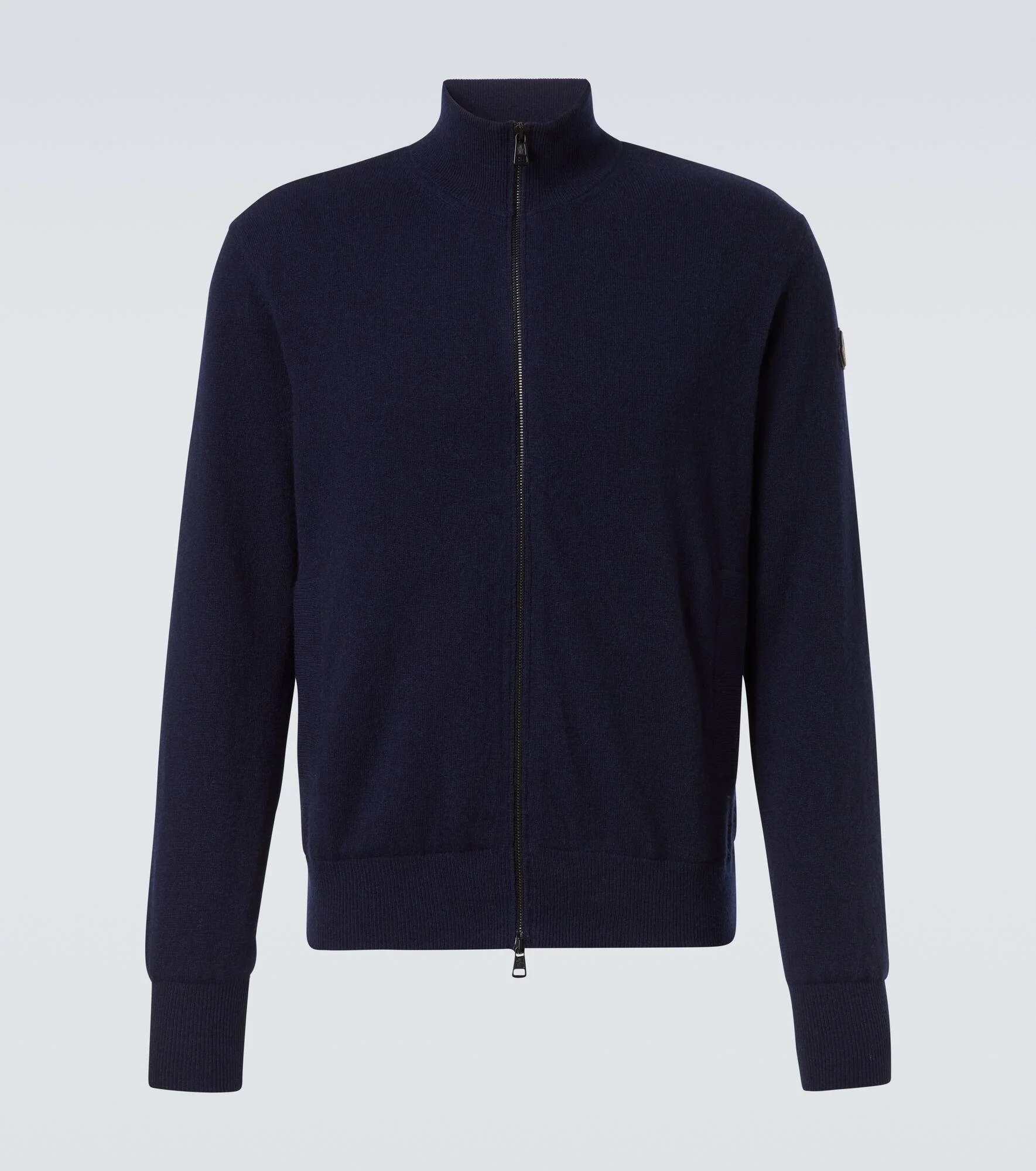 This Moncler cardigan is made from a warm wool and cashmere blend using an interlock knitting stitch for a textured finish. The design has a zipped front opening for sleek style and ease. Product Details - Material: 90% wool, 10% cashmere - Care instructions: dry clean - Made in Romania - Designer color name: Obsidian Blue - Item color: blue - Lining: 100% polyester - Details: 100% cow leather - Contains non-textile parts of animal origin - Closure: two-way zipped front - Collar: turtleneck - Pockets: welt pockets - Item number: P01068480 Size & Fit - True to size - Straight fit - Non-stretchy fabric - Falls to the hip - The model in the picture is 185cm-6'1" and wearing a size L