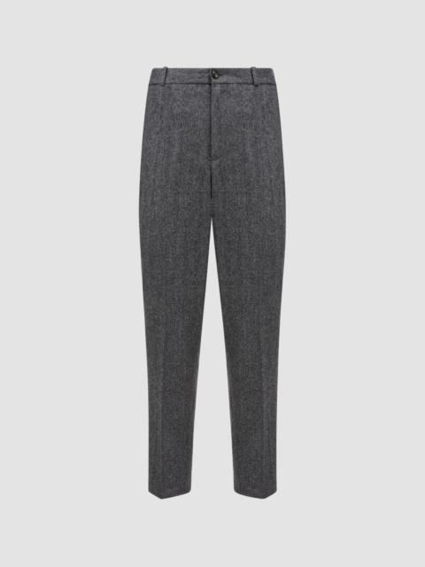 Crafted from a wool blend, these pants from the men's collection effortlessly bring together luxury and comfort. Boasting a soft yet resistant finish, these pants are crafted from a wool and nylon blend. The slacks feature a herringbone pattern in a nod to sartorial elegance. Creating a sophisticated cold weather look, they layer perfectly with a matching puffer. DETAILS - Crafted from a wool and nylon blend - Waistband with drawstring fastening - Zipper closure - Pockets with button closure - Leather logo patch SIZE AND FIT - The model is wearing a size 48 and is 187 cm tall - The model measures: chest 84 cm, waist 72 cm, hips 98 cm COMPOSITION EXTERIOR: 80% Virgin wool, 20% Polyamide / Nylon;LEATHER TAG: COW Product code J20912A000445984DF99 Made in Romania