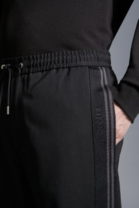 A casual staple in a man's wardrobe, these jogging pants are crafted from wool gabardine. Comfortable enough to be worn all day, these gabardine pants feature an elasticized waistband. The joggers are embellished with stripes along the legs. - Crafted from gabardine and wool blend - Waistband with drawstring fastening - Zipper closure - Side slant pockets - Back pockets with snap button closure - Side striped bands with embroidered logo lettering - Logo patch SIZE AND FIT - The model is wearing a size 48 and is 187 cm tall - The model measures: chest 92 cm, waist 75 cm, hips 93 cm COMPOSITION AND CARE EXTERIOR: 54% Virgin wool, 45% Polyester, 1% Elastane / Spandex Wash max 30°C - Mild process; Do not bleach; Do not tumble dry; Ironing maximum temperature 110°C - without steam; Do not dry clean; Professional wet cleaning - mild process; Flat dry in the shade; Wash separately; It is advisable to wash and iron the garment on reverse. Product code J10912A00005597FV999 Made in Hungary