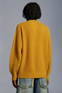 A staple from the Moncler x Palm Angels collection for men and women, this crew neck sweater is crafted from wool. A mid-weight knit, this sweater is crafted from carded wool. Featured in a classic crew neck silhouette, the genderless knit comes in an oversized fit. - Crafted from carded wool - Crew neck - Half brioche stitch - Gauge 5 - Velvet logo patch SIZE AND FIT - The male model is wearing a size M and is 188 cm tall - The female model is wearing a size XS and is 178 cm tall - The male model measures: chest 85 cm, waist 71 cm, hips 91 cm, - The female model measures: bust 77 cm, waist 58 cm, hips 89 cm - Oversized fit COMPOSITION AND CARE BASE FABRIC: 100% Wool Do not wash; Do not bleach; Do not tumble dry; Ironing maximum temperature 110°C - without steam; Dry cleaning in tetrachloroethene or with hydrocarbons - mild process; Do not professionally wet clean; Flat dry in the shade; Wash separately; It is advisable to wash and iron with the garment on reverse. Product code I209L9C00002M1241131 Made in Italy
