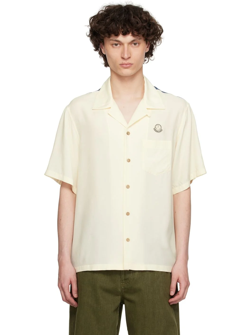 Viscose satin shirt. · Open spread collar · Button closure · Felted logo patch with hardware at chest · Patch pocket · Logo and graphic printed at back Part of the Moncler Genius x Mercedes-Benz by NIGO collaboration. Supplier color: White 100% viscose. Made in Italy 252171M192000