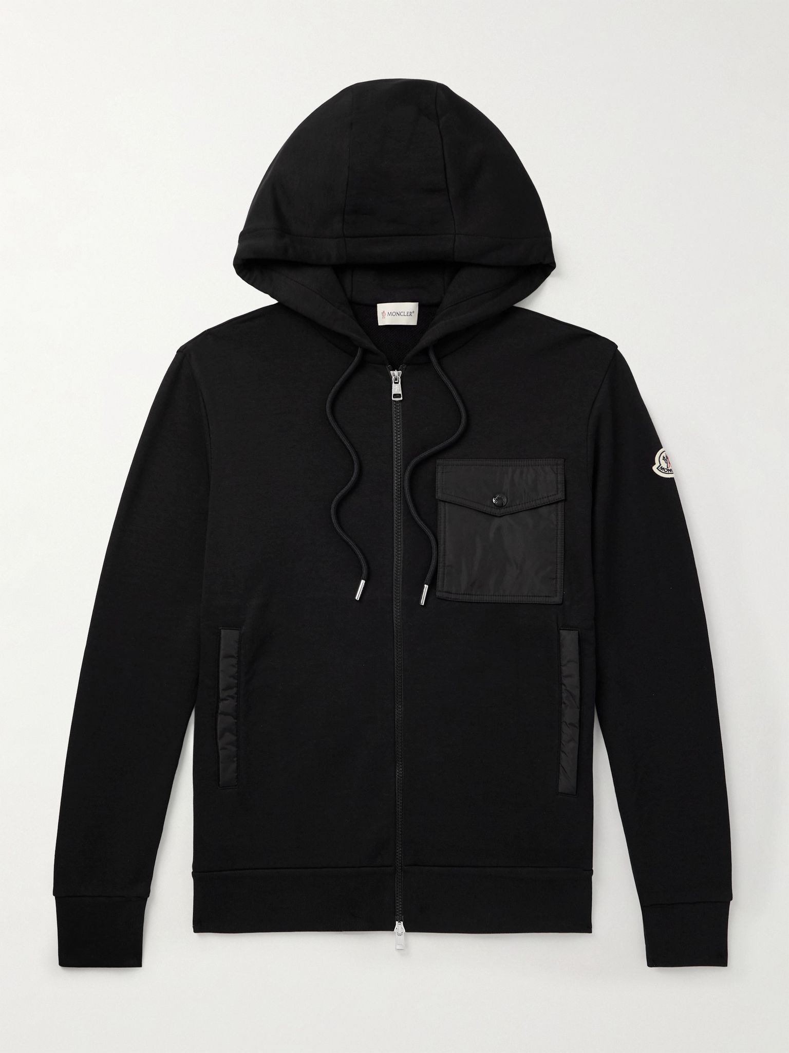 Shell-Trimmed Cotton-Blend Jersey Zip-Up Hoodie Black