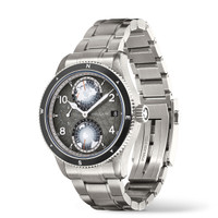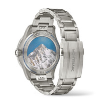 Paying tribute to the world’s highest peaks and the alpinists who dare to climb them enduring extreme conditions, this Montblanc 1858 Geosphere 0 Oxygen The 8000 is housed in a 42mm titanium case totally devoid of oxygen. This has several advantages for explorers by eliminating fogging and preventing oxidization, thus allowing the movement to last far longer with greater precision. The timepiece is powered by the MB 29.25 automatic movement with Manufacture Worldtime complication which includes the time of the 24-hour zones readable on the luminescent continents of the 3D turning Northern and Southern Hemisphere globes, day & night indications, dual time display, and a date. The timepiece also comes with a fluted bi-directional black ceramic bezel with luminescent cardinal points, a sfumato dark gray glacier pattern dial with orange accents, and an interchangeable titanium bracelet with a taper and fine adjustment system. The case back for this model features a 3D laser engraving of the K2 mountain that is depicted with incredible color, depth, and realism. Ident No. MB130982 Movement CALIBER Automatic, self-winding MOVEMENT TYPE Automatic movement Manufacture worldtime complication NUMBER OF JEWELS 26 Jewels Case CASE DIAMETER 1.65 inches CASE HEIGHT 0.50 inches WATER RESISTANT 10 bar (100 m) bar BEZEL Bi-directional turning bezel BEZEL MATERIAL Stainless steel and ceramic SAPPHIRE CRYSTAL Domed sapphire crystal with anti-reflective coating CROWN Fluted in titanium with Montblanc emblem in relief DIAL Sfumato dark gray glacier pattern dial with white luminescent black rhodium-coated Arabic numerals and indexes