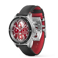 Inspired by the red glaciers found in Antarctica, this limited edition celebrating the 80th birthday of Reinhold Messner, comes with a red sfumato glacier pattern dial. The 44 mm timepiece has been encased in such a way that there is no oxygen inside. This unusual operation has numerous benefits for mountaineers who need their equipment to work perfectly in the harshest climates, making it the perfect model to pay tribute to Reinhold Messner and his numerous achievements. Powered by Montblanc’s Manufacture chronograph with worldtime complication, calibre MB 29.27, this automatic movement includes a date at 3 o’clock and two 3D turning globes with the Northern Hemisphere at 12 o’clock and the Southern Hemisphere at 6 o’clock. The timepiece is fitted with a fluted bi-directional black ceramic bezel with cardinal points and an interchangeable black textile strap with a touch of red stitching that recalls the wonders of the rare red glaciers. Ident No. MB132303 Movement MOVEMENT TYPE Manufacture automatic movement Chronograph with worldtime complication POWER RESERVE 46 h FREQUENCY (VPH) 4 /h FREQUENCE (HZ) 28800,0 Hz NUMBER OF JEWELS 33 Jewels Case CASE MATERIAL Titanium CASE DIAMETER 1.73 inches CASE HEIGHT 0.67 inches WATER RESISTANT 10 bar (100 m) bar BEZEL Bi-directional turning bezel BEZEL MATERIAL Stainless steel and ceramic SAPPHIRE CRYSTAL Domed sapphire crystal with anti-reflective coating