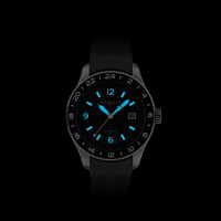 Where most GMT timepieces indicate the second time zone with an additional hand, the Montblanc 1858 GMT features a GMT indication without hands that is very intuitive and highly legible. The Montblanc 1858 GMT indicates the second time zone with a red square that moves around the outside of the dial. This red square is positioned next to a fixed black anodized aluminum bezel with a 24-hour clock. This system also indicates half hours. Other functions include a date and central seconds hand. The timepiece is housed in a 42 mm stainless steel case and comes with a black sunray dial as well as an interchangeable black rubber strap with fine adjustment system. An engraving on the case back shows the continents, oceans, and names of cities in each of the 24 time zones, offering a world time indication. Ident No. MB129766 Movement CALIBER Automatic, self-winding MOVEMENT TYPE Automatic movement Hours - Minutes - Seconds - Date - GMT indication by disk POWER RESERVE 50.0 h FREQUENCY (VPH) 4 /h FREQUENCE (HZ) 28800,0 Hz NUMBER OF JEWELS 25 Jewels Case CASE DIAMETER 1.65 inches CASE HEIGHT 0.48 inches WATER RESISTANT 10 bar (100 m) bar BEZEL Fixed SAPPHIRE CRYSTAL Domed sapphire crystal with anti-reflective coating CROWN Fluted in stainless steel with Montblanc emblem DIAL Black sunray dial with rhodium-coated luminescent Arabic numerals and indexes; GMT with red aperture